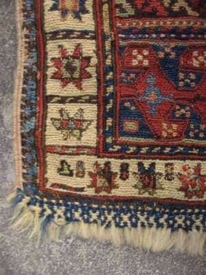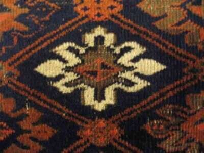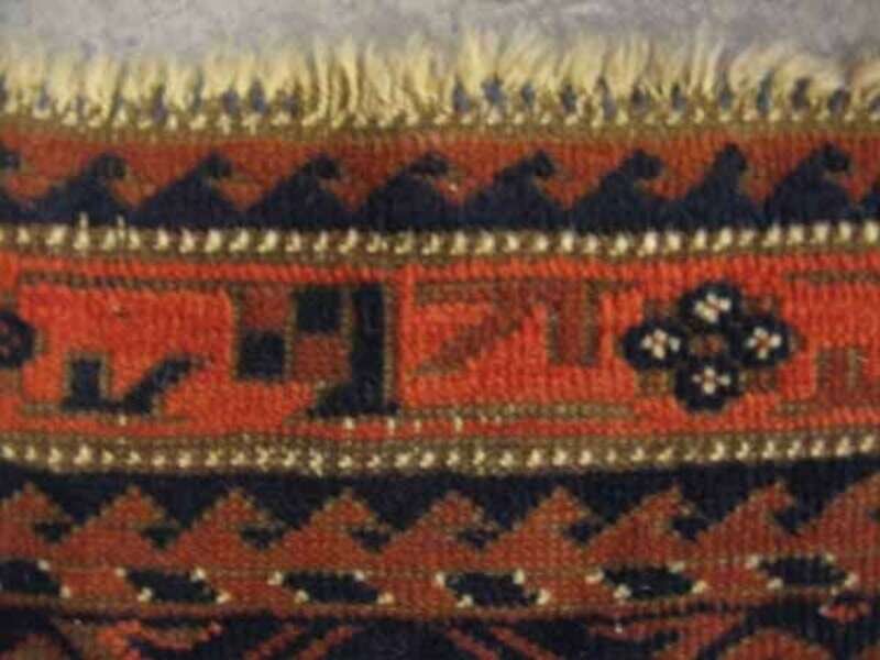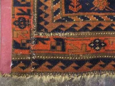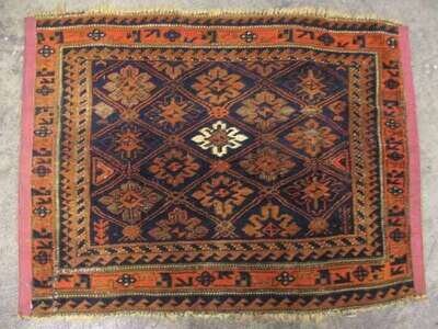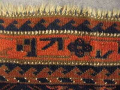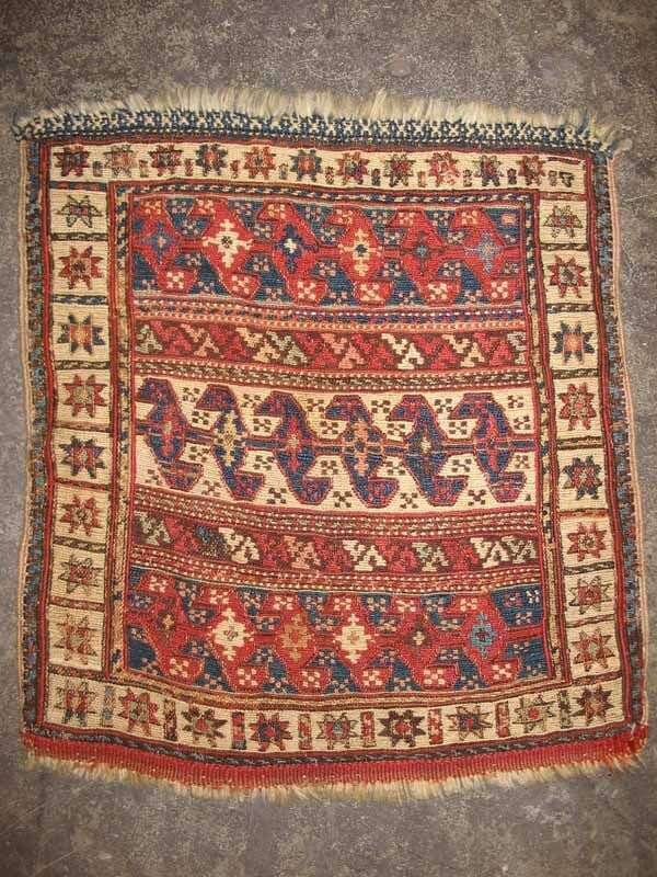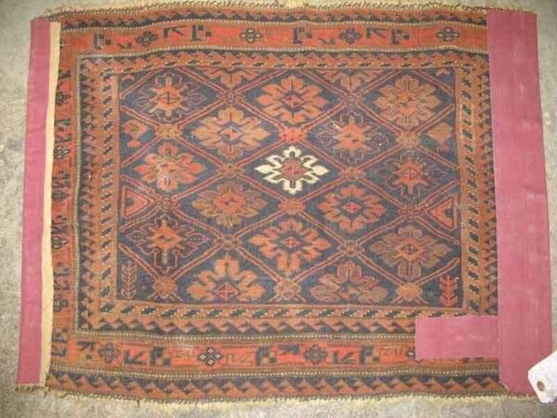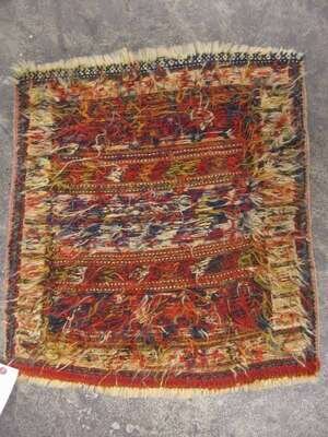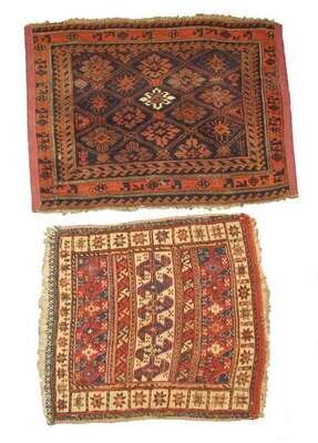 One: Belouch mat, Northeast Persia, circa second half 19th century 1 ft. 11 in. x 2 ft. 7 in. One: Shahsavan Soumac mat , circa 1900 1 ft. 11 in. x 1 ft. 9 in. (2).