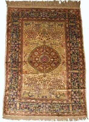 Kashmir silk rug north india, 20th century