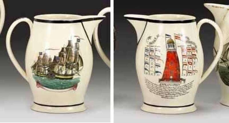 Decorated with "Signals at the Portland Observatory" of Portland, Maine with 24 flags and "Explanation" below (McCauley No. 260), the reverse decorated with two ships at sea, one flying an American flag and "Washington" inscribed on stern, both flying house flag with a "W"