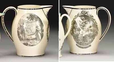 Transfer-printed commemorative presentation creamware pitcher attributed to the herculaneum pottery, early 19th century