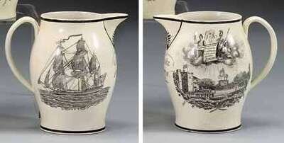 Liverpool black transfer-decorated creamware pitcher herculaneum pottery, late 18/early 19th century