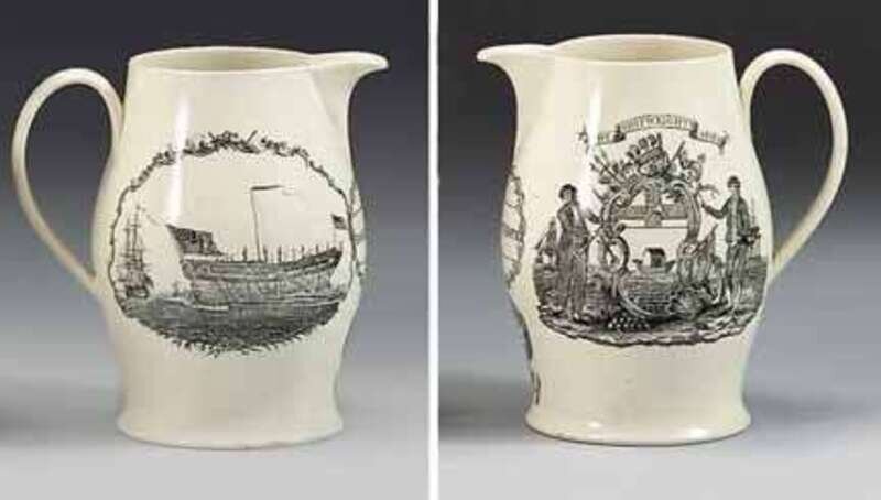 Black transfer printed creamware presentation pitcher attributed to herculaneum, early 19th century