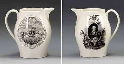 Black transfer-decorated creamware pitcher attributed to herculaneum, early 19th century