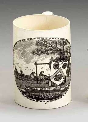 Large transfer-printed creamware commemorative mug late 19th/early 19th century