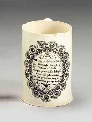 Decorated with ribbon border inscribed with the names of sixteen states and the verse "Oh Liberty thou Goddess Heavenly bright. Profuse of Bliss and pregnant with delight Eternal pleasures in thy presence reign and smiling plenty leads thy wanton train," (McCauley No. 115).