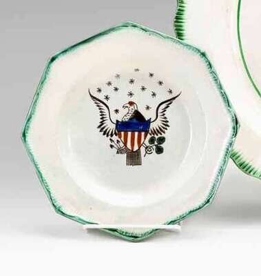 Of octagonal form with molded and feathered edge decorated with eagle with outstretched wings with shield at breast below 15 stars.