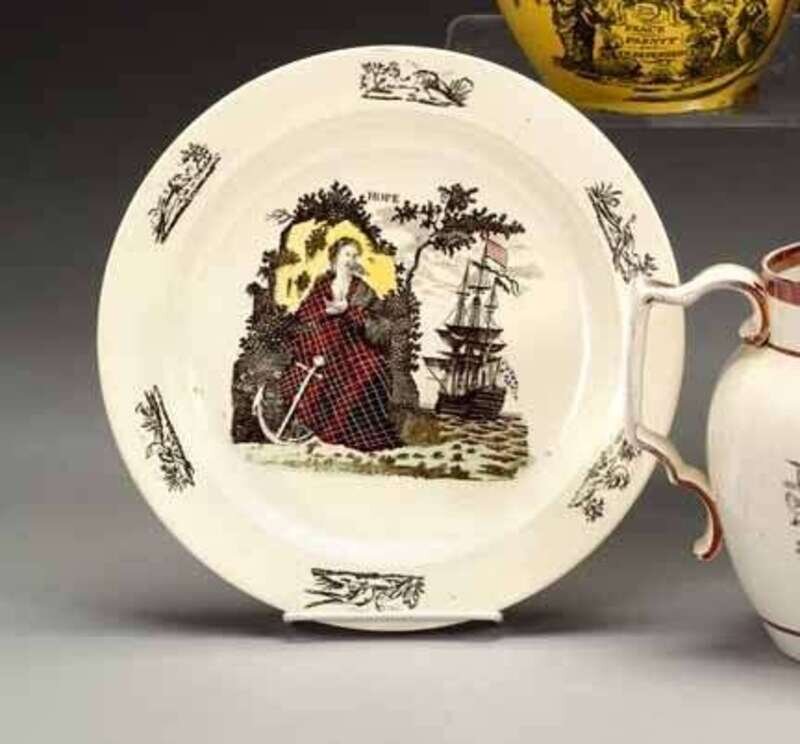 Enameled and transfer-printed creamware plate probably herculaneum, early 19th century