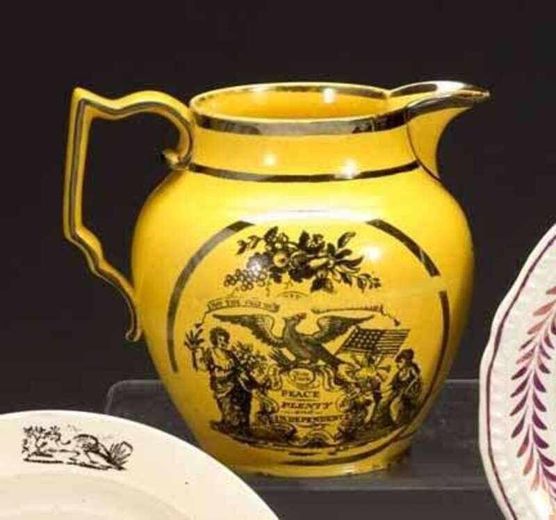 Decorated on each side with "Peace Plenty and Independence," and "May the Tree of Liberty Ever Flourish," banding, and starburst below spout.