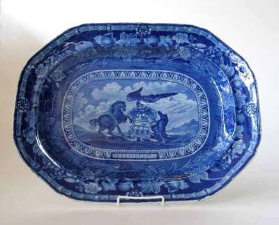 Historical blue transferware platter thomas mayer, stoke, cliff bank works, circa 1830
