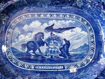 Decorated with the "Arms of Pennsylvania" (Larsen No. 264), within a trumpet flower and vine border.