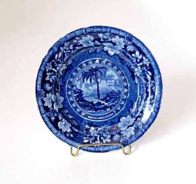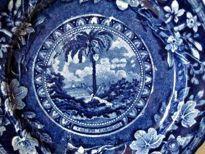 Historical blue transferware toddy plate thomas mayer, stoke, cliff bank works, circa 1830