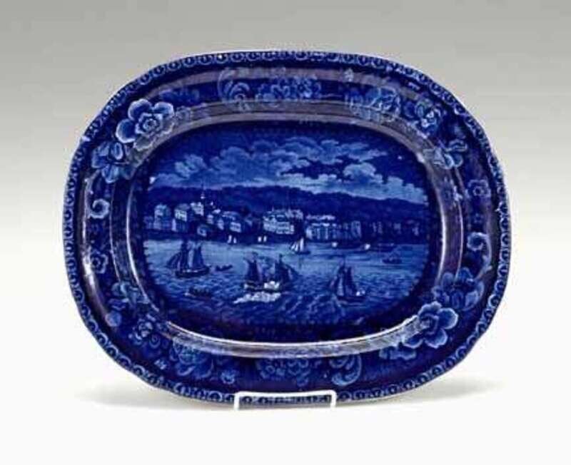 Historical blue transferware platter unknown maker, early 19th century