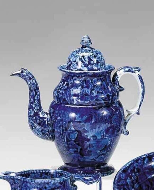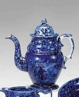 Historical blue transferware coffeepot enoch wood and son, burslem, early 19th century
