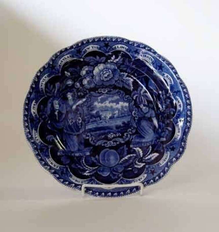 Historical blue transferware dinner plate james and ralph clews, cobridge, 1819-1836
