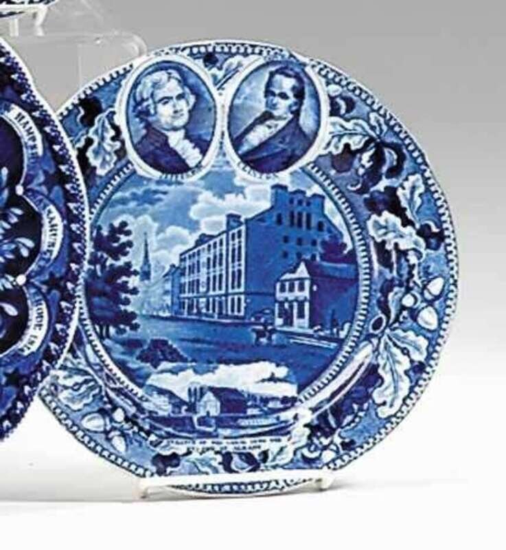 Decorated with "Medallions with Two Portraits" of Thomas Jefferson and Governor Clinton above the "City Hotel, New York" and inset view "Entrance of the Canal Into the Hudson at Albany."