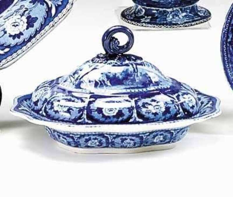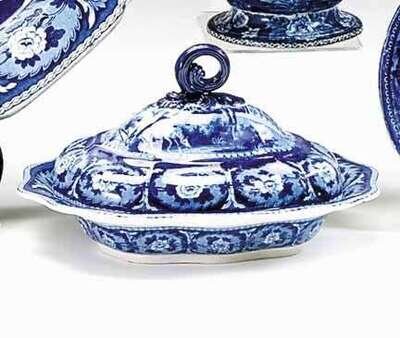 Historical blue transferware covered vegetable dish john & william ridgway, hanley, 1814-1830