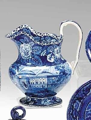 Historical blue water pitcher tams, anderson and tams, longton, early 19th century