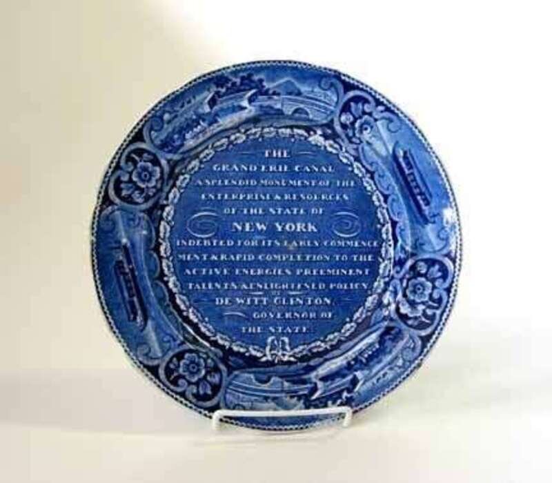 Decorated with "Erie Canal Inscription, DeWitt Clinton Eulogy" (Larsen No. 638), within a canal boat medallion border.