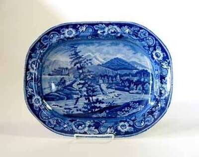 Decorated with "Junction of the Sacandaga and Hudson Rivers" (Larsen No. 100) within a flower and scroll border, impressed mark.