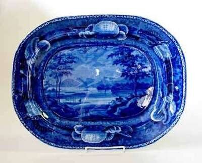 Historical blue transferware platter enoch wood and sons, burslem, 1819-1846