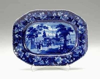 Historical blue transferware platter ralph stevenson, cobridge, 1850-1840