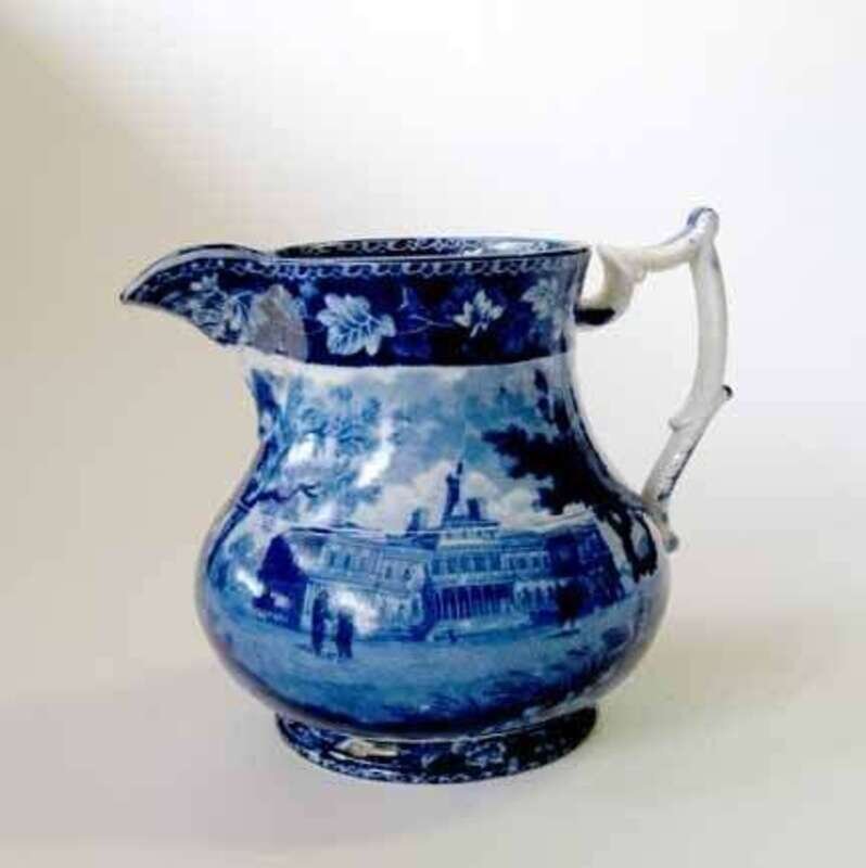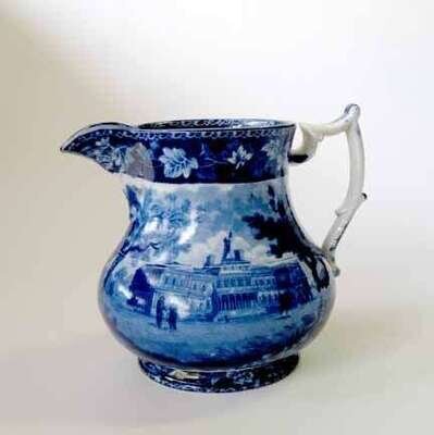 Historical blue transferware pitcher ralph stevenson, cobridge, 1815-1840