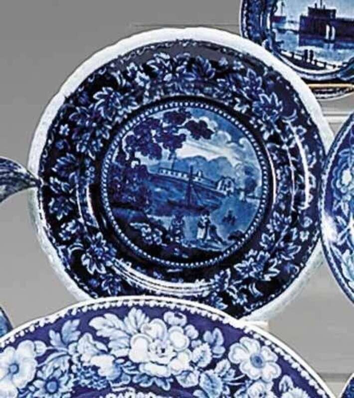 Decorated with "Fort Gansevoort, New York" (Larsen No. 309), within a leaf and vine border with white molded edge, impressed mark.