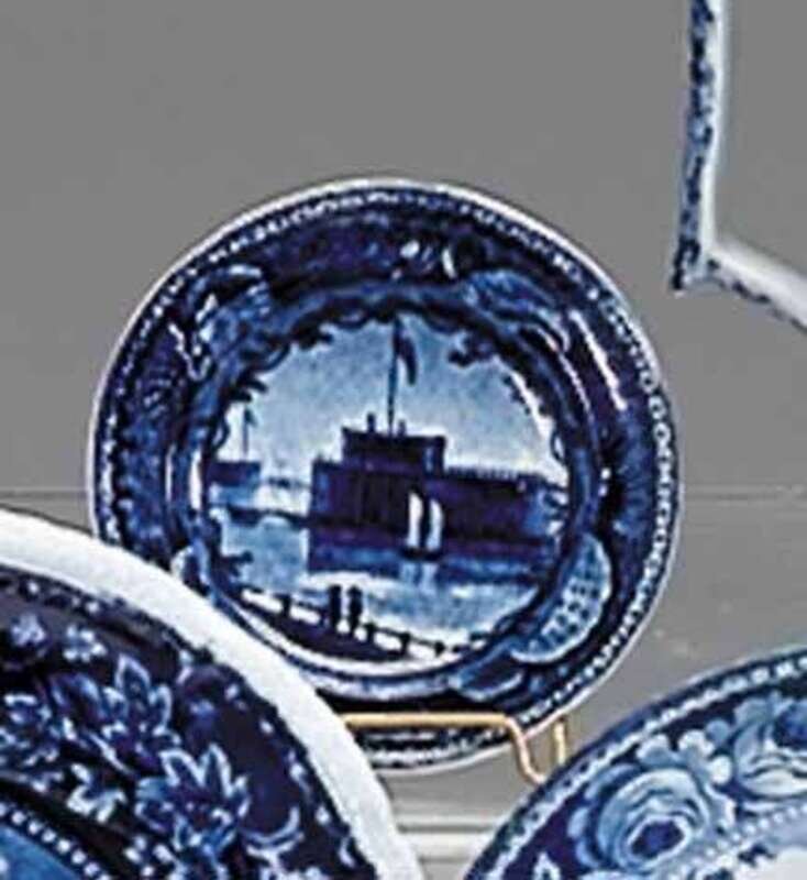 Decorated with "Castle Garden, Battery, New York" (Larsen No. 16), within a shell border, impressed mark.