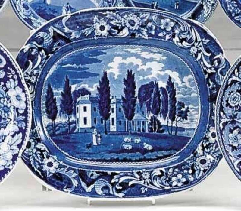 Historical blue transferware small platter joseph stubbs, burslem, 1790-1829