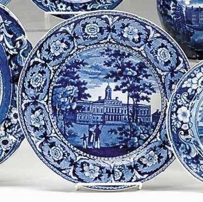 Decorated with "City Hall, New York" (Larsen No. 179), from Ridgway's "Beauties of America" series, within a floral medallion border.
