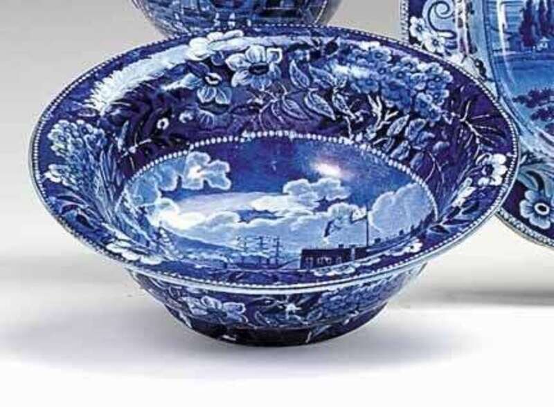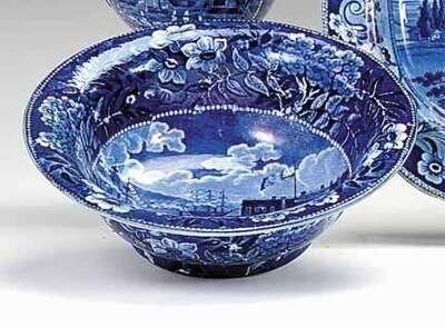 Historical blue transferware washbowl james and ralph clews, cobridge, 1829-1836