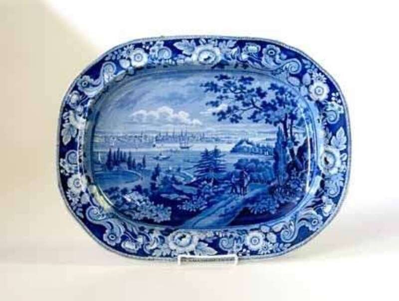 Decorated with "New York from Weehawk," note: Showing a view of Staten Island to the right and Long Island to center and left, after a painting by W.G. Wall and a later engraving by J. Hill.
