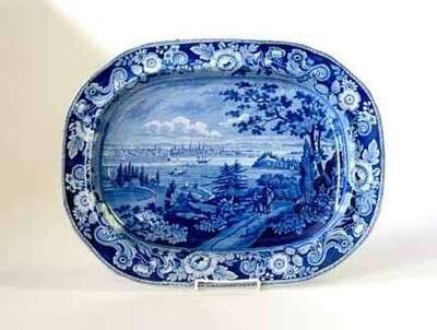 Historical blue transferware platter andrew stevenson, cobridge, 1808-1829