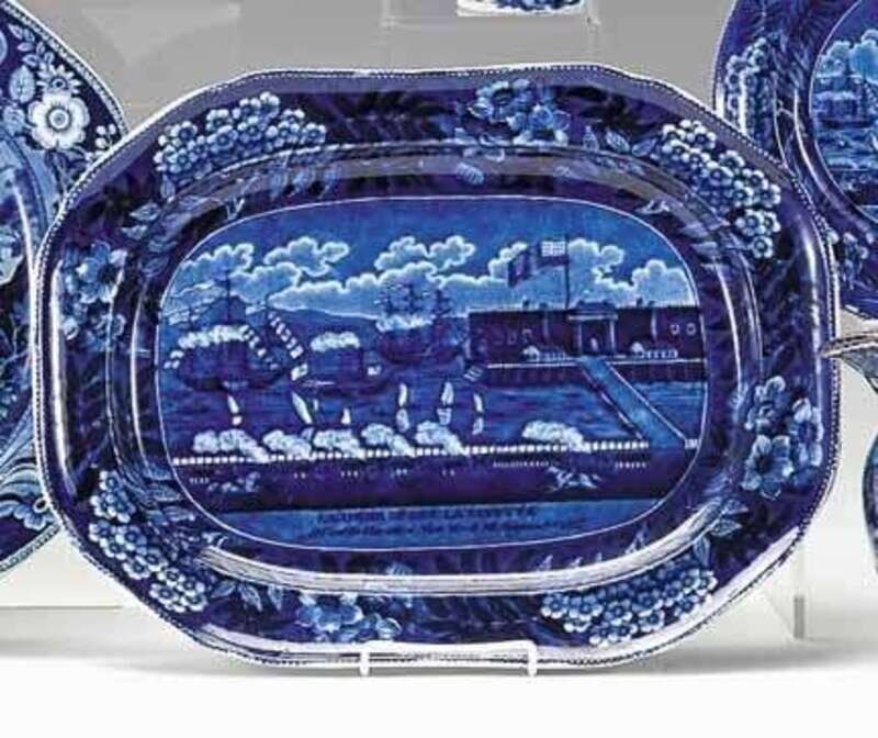 Of oval form, decorated with "Landing of Gen. Lafayette at Castle Gardens new York, 16 August, 1824" (Larsen No. 125), within a floral border.