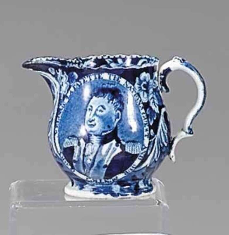 Historical blue transferware creamer james and ralph clews, cobridge, 1829-1836