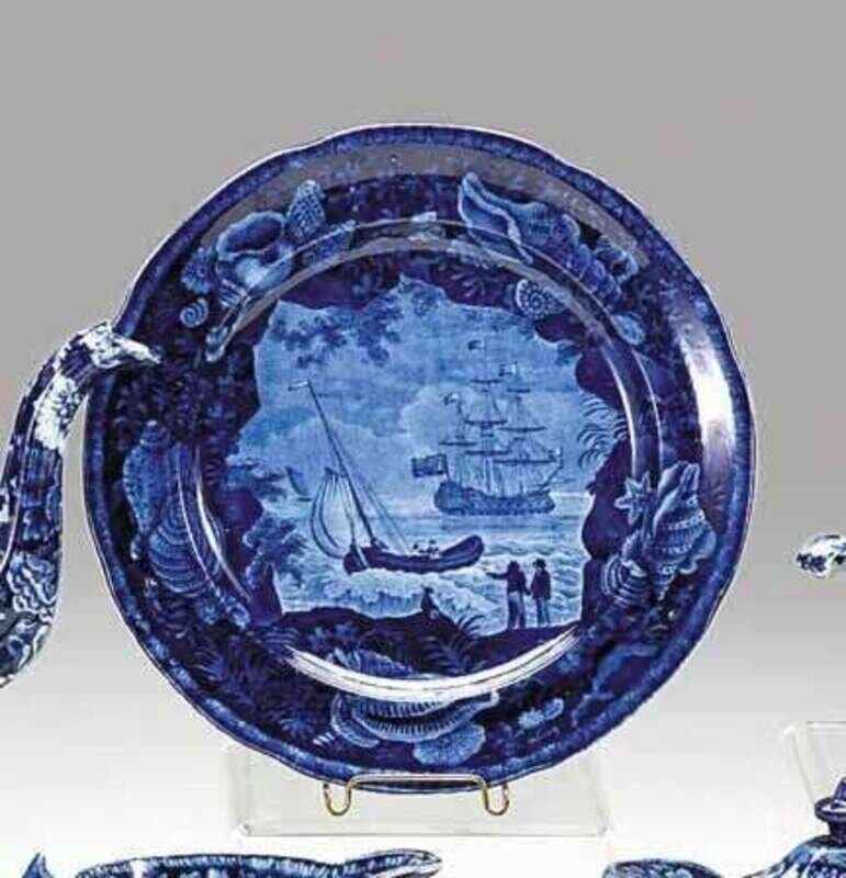 Historical blue transferware dinner plate enoch wood and sons, burslem, 1819-1846