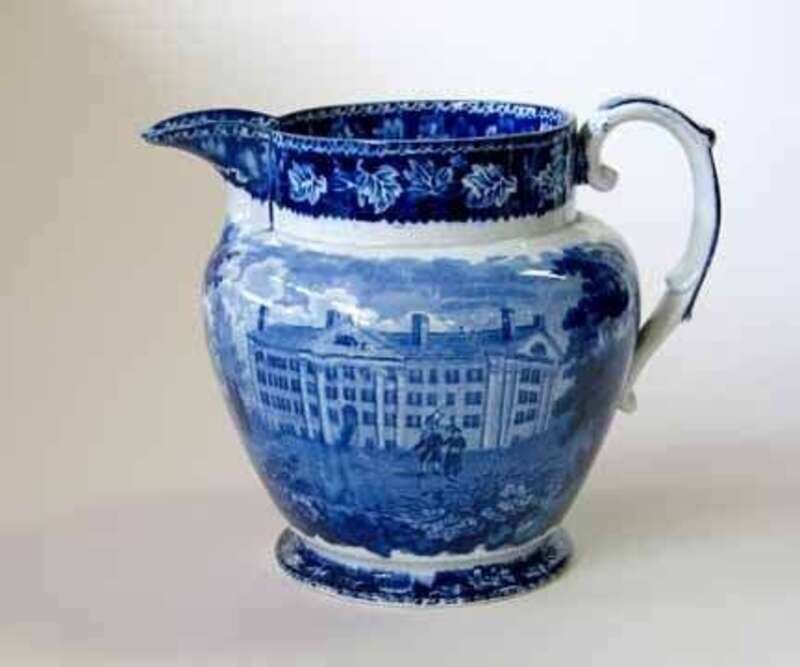Of ovoid form, decorated on one side with "New York, Alms House" (Larsen No. 304) and with "Deaf and Dumb Asylum, Hartford" (Larsen No. 303) reverse, within leaf and vine borders.