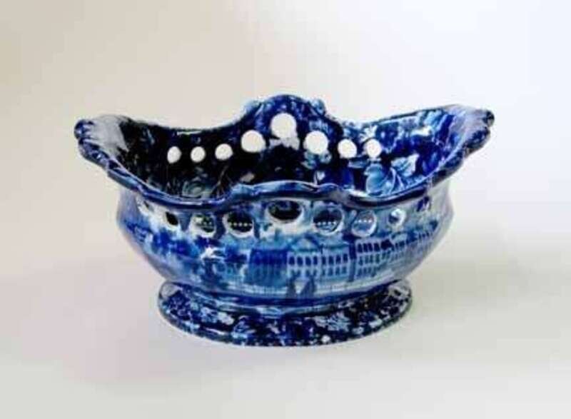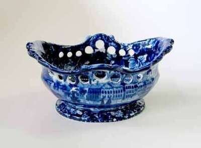 Of oblong, baluster form with shaped, pierced rim decorated with "Brooklyn Ferry" on the interior, and "Deaf & Dumb Asylum, Hartford Connecticut," and "Alms House, New York" on the exterior.