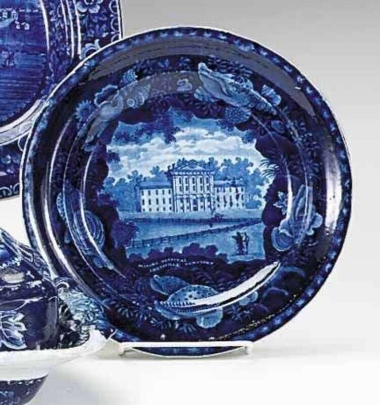 Historical blue transferware plate enoch wood and sons, burslem, 1819-1846