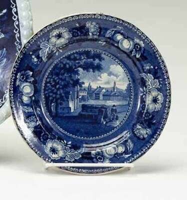 Historical blue transferware small plate unknown marker, england, early 19th century