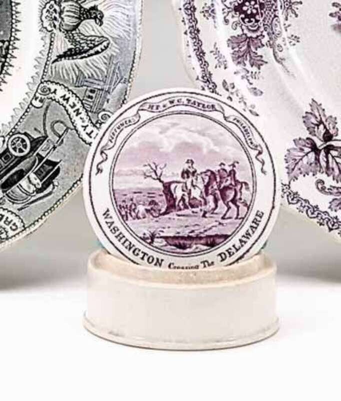 Decorated with "Washington Crossing the Delaware" after a painting by Thomas Sully and made for the "Perfumers H.P. & W.C. Taylor Philadelphia."