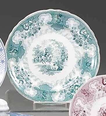 Historical green transferware plate anthony shaw, burslem, 1850-1878