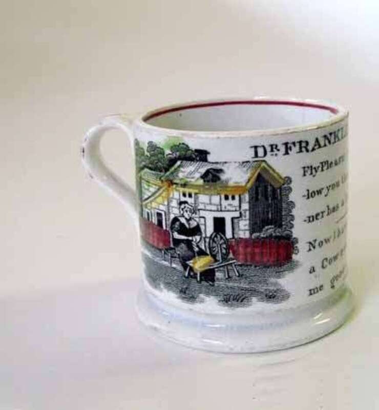 Decorated with "Dr. Franklin's Maxims-Fly pleasures and they will follow you the dilligent spinner has a large shift./ Now I have a sheep and a cow every body bids me good morrow."