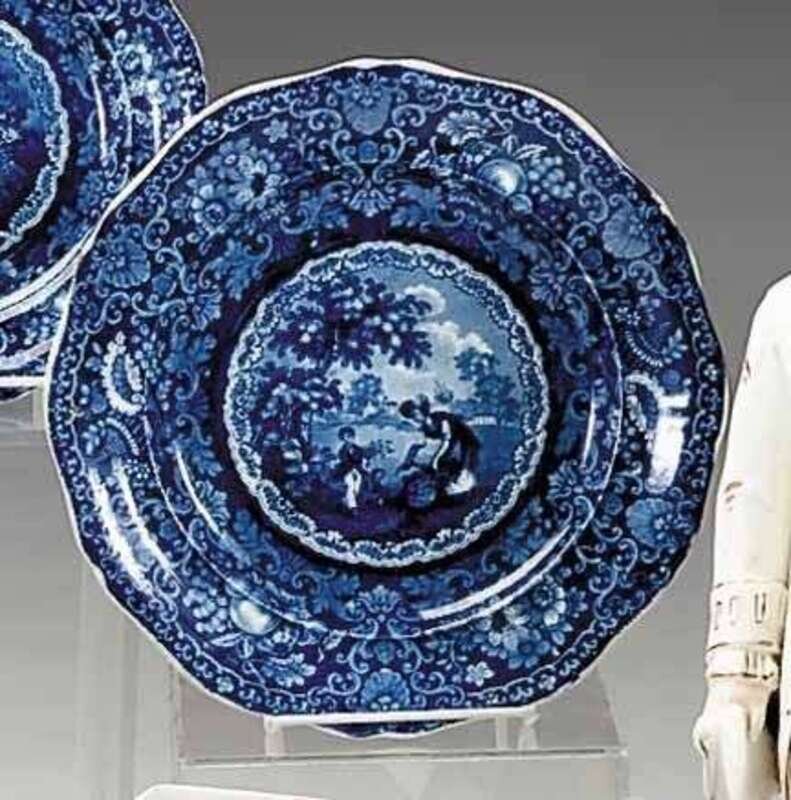Historical blue transferware plate davenport and co., longport, circa 1830