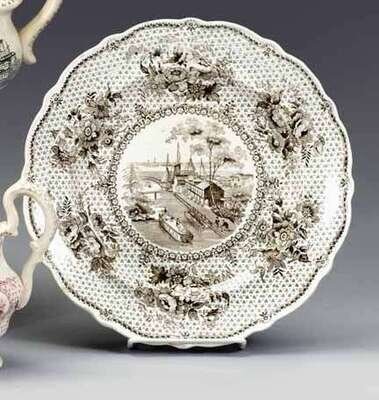 Historical brown transferware plate ralph stevenson, cobridge, 1810-1825