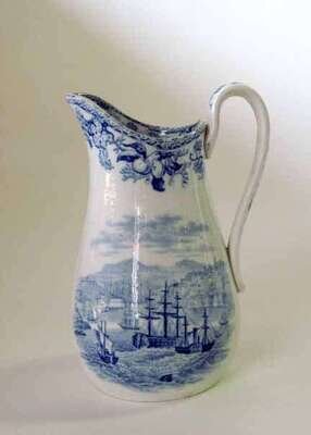 Historical light blue transferware pitcher circa 1830
