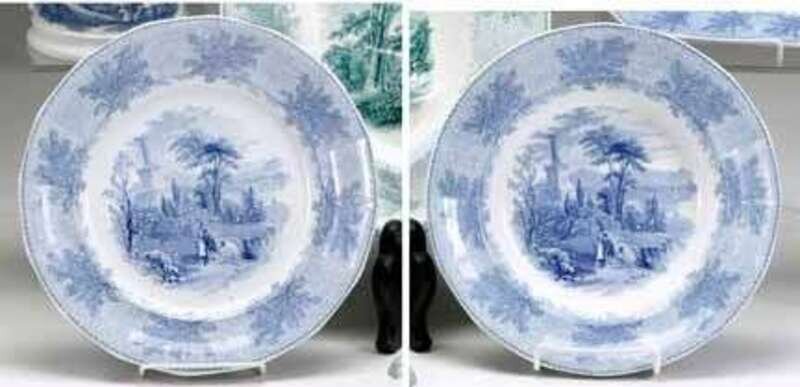 Historical light blue transferware plate and soup plate william ridgway & son, circa 1844