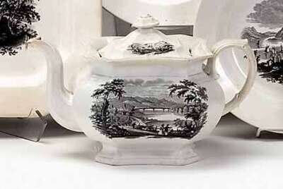 Black transferware paneled teapot william ridgway & co, bell bank works, hanley, 1830-1854