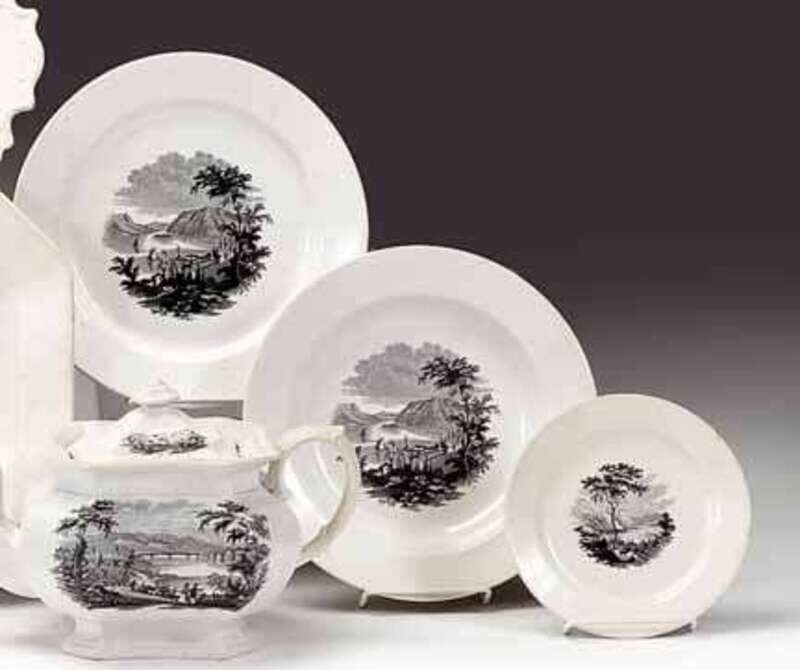 Including a soup plate and a dinner plate decorated with a "View from Ruggles' house, Newburgh, Hudson River," and a bread plate decorated with "The Valley of Shenandoah From Jefferson's Rock."