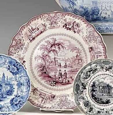 Purple transferware dinner plate edward and george phillips, longport, 1822-1829